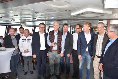 MYK. In entspannter und gemütlicher Atmosphäre stachen unlängst die Mitglieder des SPD-Regionalverbandes Rheinland, darunter auch einige Genossen aus dem Kreisverband Mayen-Koblenz, zu einer Schiffsfahrt von Koblenz nach St. Goarshausen/Loreley in See. Bei einem tollen Ausblick auf die Burgen und Schlösschen des Mittelrheintales kam dabei auch die Politik nicht zu kurz. So waren neben dem Vorsitzenden des SPD-Regionalverbandes Rheinland, Landtagspräsident Hendrik Hering, auch zahlreiche regionale Abgeordnete aus Bundes- und Landtag sowie Mitglieder der Landesregierung, kommunal verantwortliche Mandatsträger und Vertreter von Presse und Fernsehen mit dabei. Besonders freuten sich die Genossen über den Besuch von Ministerpräsident a. D. Rudolf Scharping, der sich in einer kurzen Rede an die zahlreich erschienenen Gäste wandte.