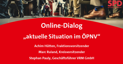 Der Unmut über die Probleme im öffentlichen Personennahverkehr im Kreis Mayen-Koblenz ist groß. Seit dem Fahrplanwechsel am 12. Dezember 2021 gibt es weder einen funktionierenden Schülerverkehr noch einen reibungslosen regulären Linienbetrieb. Der neue Betreiber, die zum Transdev-Konzern gehörenden Verkehrsbetriebe Rhein-Eifel-Mosel (VREM), tut sich schwer, seine vertraglich festgeschriebenen Pflichten zu erfüllen. Diese Problematik wollen die SPD Mayen-Koblenz und die SPD-Kreistagsfraktion gemeinsam mit Stephan Pauly, Geschäftsführer der Verkehrsverbund Rhein-Mosel GmbH, im Rahmen eines Bürgerdialogs besprechen. Zur öffentlichen Videokonferenz am Donnerstag, 20. Januar 2022 ab 18.30 Uhr sind alle Interessierten eingeladen, mitzudiskutieren. Um Anmeldung per Mail an spd-rgs.koblenz@spd.de wird gebeten. Im Anschluss werden die Zugangsdaten versendet.