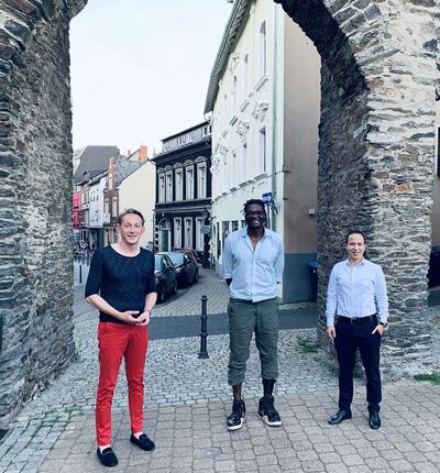 Marc Ruland und Faisal El Kasmi trefffen Sitzvolleyballspieler Francis Tonleu vor seiner Abreise nach Tokio